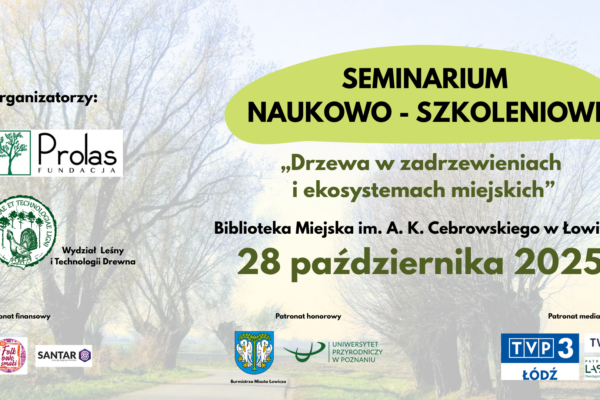 Fundacja Prolas wraz z Wydziałem Leśnym i Technologii Drewna Uniwersytetu Przyrodniczego w Poznaniu zapraszają na wyjątkowe seminarium naukowo-szkoleniowe poświęcone wyzwaniom zieleni miejskiej w polskich miastach. Dla kogo? 👉 Samorządowców 👉 Urzędników odpowiedzialnych za zieleń miejską 👉 Architektów krajobrazu 👉 Przedstawicieli organizacji ekologicznych Dlaczego warto uczestniczyć? ✔ Wystąpienia ekspertów z Uniwersytetu Przyrodniczego w Poznaniu ✔ Praktyczne case studies z polskich miast ✔ Warsztaty i dyskusje o aktualnych wyzwaniach ✔ Networking z praktykami z całej Polski Miejsce: Biblioteka Miejska im. A.K. Cebrowskiego w Łowiczu Data: 28 października 2025 r. Patronat honorowy: Rektor […]